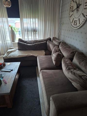 Mooie grote hoekbank voor in een keet. Het loungegefeelte zitten scheuren in maar zie je met een kleed erover niks van. Maandag ophalen