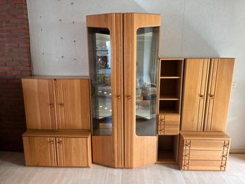 Gratis ophalen* houten (vitrine)kast met lades. Goed onderhouden. Alle deurtjes en lades sluiten. Het betreft een set.