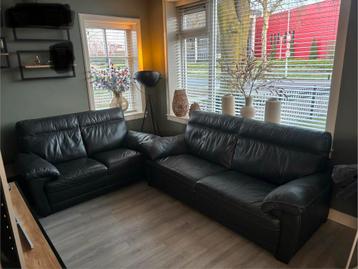 Mooi bankstel met een 2-persoons en een 3-persoons bank. Het leer is in goede staat en de banken zien er netjes uit. De banken zijn zwart van kleur.