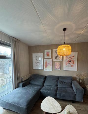Comfortabele grijze hoekbank van ongeveer 5 jaar oud. De bank heeft gebruikssporen, de leuning aan de rechterkant is ingedeukt. Verder is het een lekkere 'inzakbank'. Lengte: 2,80m, breedte: l