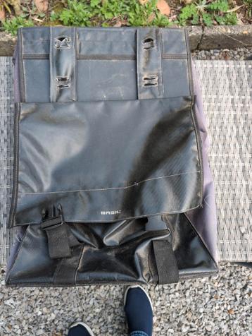 Gratis af te halen: een set gebruikte dubbele fietstassen van het merk basil. De tassen zijn nog functioneel, maar vertonen duidelijke gebruikssporen. Ideaal voor wie op zoek is naar een praktische op