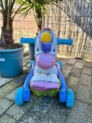 Gratis af te halen unicorn loopwagen. Hij is buiten gebruikt maar werkt nog prima.