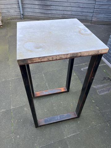 Zoals te zien is tafelblad zichtbaar beschadigd en poten beginnen roest te vertonen. Gaat anders naar de stort maar misschien kan iemand er nog wat mee