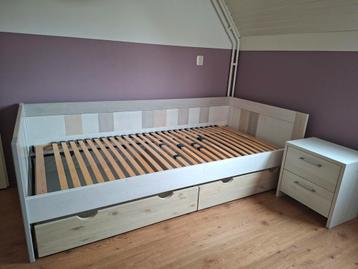 Een nog prima bed, 90×200, zonder matras. Met een goede lattenbodem, 2 grote lades en een nachtkastje. Kan gratis opgehaald worden t/m zondag 22 maart. Gratis.