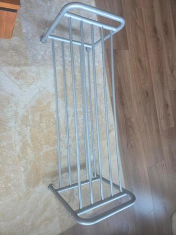 Handig en stevig schoenenrek, ideaal voor het opbergen van meerdere paren schoenen. Het rek is gemaakt van metaal en heeft een neutrale zilverkleur, waardoor het in diverse interieurs past. Perfect vo