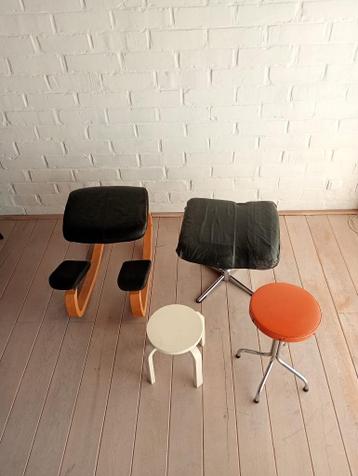 Set van 4 stoeltjes, waarvan 1 design zitje varier variable. Ontwerper : peter opsvik stokke, 1979. Vertonen allerlei gebruikssporen. Alle 4 tesamen gratis ophalen! Asse (be)
