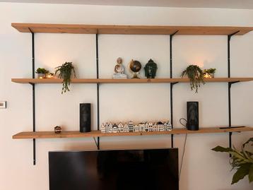 Set van vier robuuste muurplanken, inclusief een compleet zwart metalen bevestigingssysteem. Zelf van de muur afhalen. Wij hebben helaas geen boormachineš„²