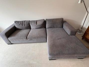 Comfortabele grijze slaapbank, bestaande uit twee delen. Het uittrekbare gedeelte transformeert de bank eenvoudig tot een breed slaapoppervlak, ideaal voor logees of extra ontspanning. De bank is gebr