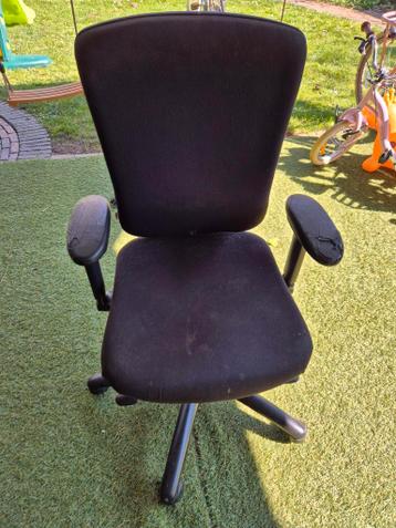 Gratis moet weg deze zwarte bureaustoel heeft beschadigde armleuningen. De zitting en rugleuning zijn zwart. De stoel heeft wieltjes en is draaibaar. Stoel is in hoogte verstelbaar. De beschadiginge