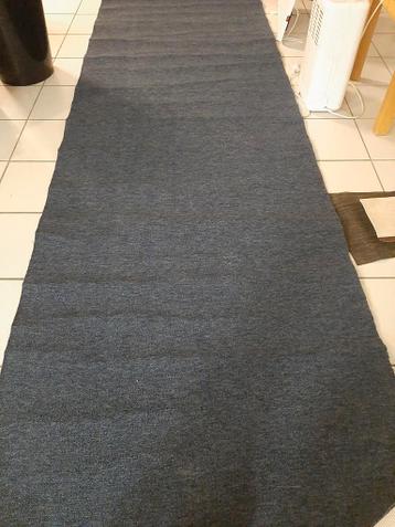 Gratis stuk vloerbedekking 4 meter lang en 110 breed kleur blauw /grijs.