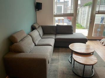Grijze hoekbank van henders & hazel, voorzien van 2 hoofdsteunen. Afmetingen: lengte: 279 cm breedte: 229 cm de bank is gebruikt maar verkeert nog in prima staat. Enig aandachtspunt: de verbindin