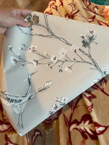 Een flinke rol behang over met een prachtig motief van bloesemtakken en een kraanvogel. Gratis af te halen.