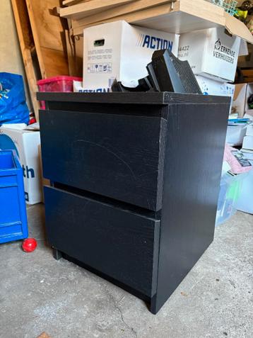 Ladekast 2 lades, zwartbruin, 40x55 cm. Gebruikt, maar na een likkie verf weer zo goed als nieuw.