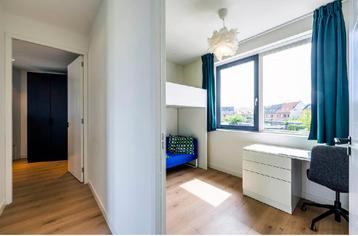 Donkergroen gordijn. Twee stuks om 280 breed en 180 hoog mee te sluiten. Klein glimmetje in de stof.