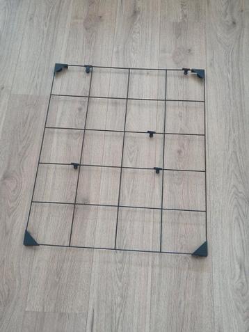 Dit is een zwart metalen rekje, leuk om foto's en dergelijke aan op te hangen. Er zitten ook clipjes bij om dingen mee vast te maken. Het rekje heeft een roosterpatroon en hoekstukken.
