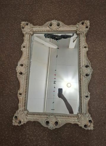 Mooie witte barok spiegel. Hij ziet eruit alsof hij van hout is, maar is van plastic, dus niet zo zwaar. De afmetingen zijn 0.70X1 meter. De spiegel is in perfecte staat.