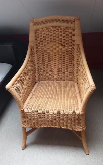 Ik ben aan het opruimen en deze prima rieten stoel gaat weg.