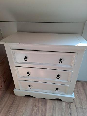 Gebruikte ladekast met 3 laden. 86 Cm hoog. Heeft gebruikerssporen maar kan nog prima voor in de schuur of iets dergelijks. Zie foto's voor afmetingen. Ophalen