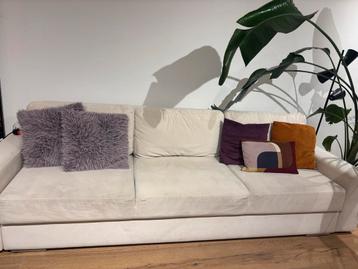 Gratis af te halen: ruime beige uitschuifbare slaapbank (diemen noord) grote beige stoffen bank in goede staat, rook- en diervrij. Uitschuifbaar als slaapbank met slaapplaats van 153 cm breed — ideaal