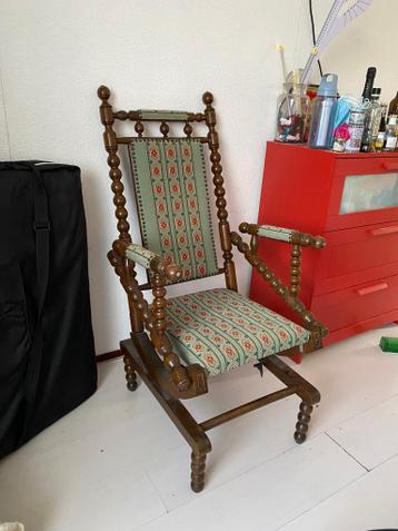 Mooie oude deense schommelstoel, een van de veren is gebroken, maar dat valt denk ik wel te repareren! Er moet misschien ook wat nieuwe lijm in het connectiepunt van de leuning. Een projectje, maar da