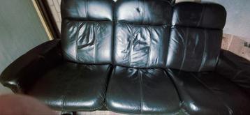 3zits zwart echt leder bioscoop/ vliegtuigbank. Met stalen onderframe. In goede staat, alleen een klein slijtage plek op de rechter zitvlak. Hoogte 103cm. Lengte 200cm. Breedte 80cm. Zithoogte 40cm. G