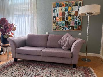 Onze nette bank moet de deur uit, voor 3 april aanstaande. Op de foto's lijkt hij roze maar dat is hij niet :-) hij is grijs, de kussens zijn stevig, er zitten geen vlekken in, geen vieze plekken.