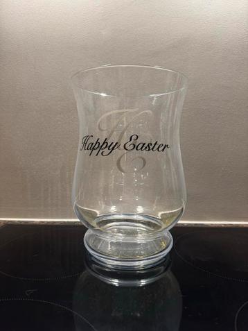 Een glazen vaas met de tekst "happy easter" erop. Gratis afhalen
