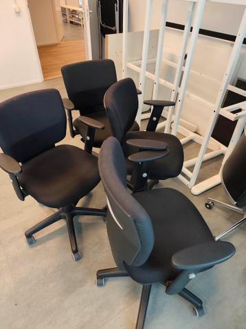 Bureaustoel, gebruikt. Zwarte stoel met armleuningen en wieltjes. Er zijn meerdere stoelen beschikbaar.