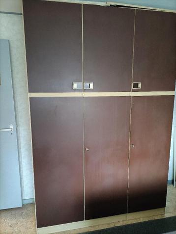 Een vintage 3 deurs hang leg kast uit 1974. Boven 3 deurtjes met legplanken en onder 3 deuren met hanggedeelte. Hoogte 220 breed 150 en diep 55 zelf de kast demonteren en van de 1e verdieping halen.