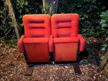 Gebruikte bioscoopstoelen die er nog goed uitzien en heerlijk zitten! Het zijn klapstoelen, oftewel het zitgedeelte klapt omhoog als je opstaat. Heb ze vervangen voor een bank, dus ze staan nu alleen