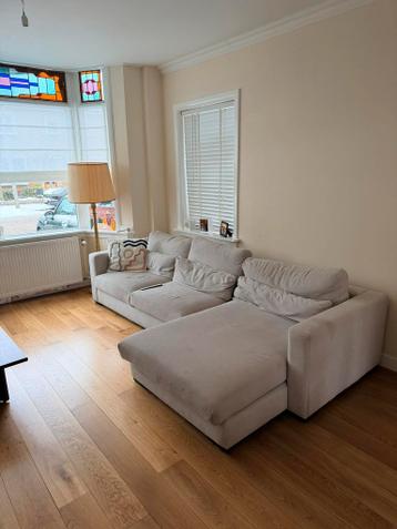 Onze bank mag je komen halen in ruil voor een (goede) fles wijn. Bank heeft gebruikssporen en wat haakjes door onze kat. Hij bestaat uit 2 delen. Afmetingen: 290 cm breedt, chaise longe is 160cm lang.