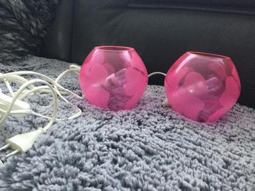 Gratis af te halen. Twee leuke lampjes van ikea, kleur roze. Lampen zijn van glas.