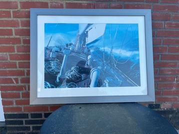 Mooie nautische poster met grijze lijst afmetingen zijn 88 cm breed en 68 cm hoog.