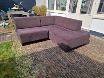 Deze hoekbank is gebruikt, maar de kussens zitten nog prima. De bank is nog goed voor een tweede ronde. Voor vervoer is de bank los te koppelen.