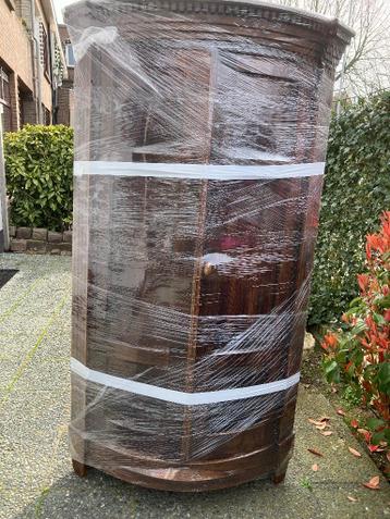 Wegens verhuizing gratis af te halen halfronde antieke hoekkast diep73 cm. Hoog 1. 97 M houtsoort: teak