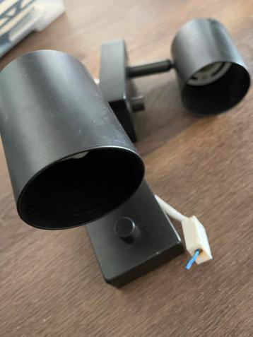Twee zwarte wandlampjes. Ze zijn dimbaar. De lampjes zijn van metaal en geschikt voor een spot. Gratis af te halen