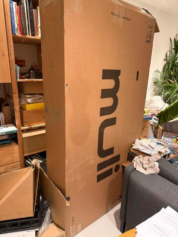 Een grote kartonnen doos van muli. Geschikt voor het verzenden of opslaan van een fiets of fietsonderdelen. De doos is leeg en in gebruikte staat.