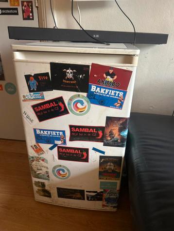 De koelkast is gebruikt, maar functioneert nog prima. Afmetingen: ongeveer 85 cm hoog, 45 cm breed en 45 cm diep. Inhoud van circa 75 liter.