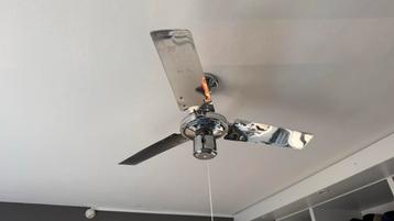 Mooie plafondventilator in chroom uitvoering. Ideaal voor verkoeling in de slaapkamer of woonkamer. Werkt perfect en is eenvoudig te installeren. Voorzien van een trekkoord voor bediening. 3 Snelheden