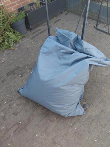 Deze grijze zitzak staat al tijden in de schuur. De zitzak is gemaakt van een stevige stof en heeft een label aan de zijkant. Er zit een rits aan de onderkant. Gratis op te halen.