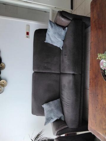 Bankstel donkerbruin stof bank +2 fauteuils voor vrijdag ophalen