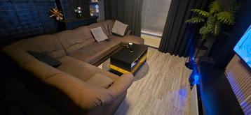 Ben je op zoek naar een zithoek voor weinig? Deze bank mag gratis weg en kan nog prima een ronde mee! Er zit lichte schade op het zitvlak, maar dit is netjes opgelost met een zwart reparatievel. Verde