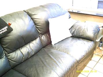 Lederen salon. 3Zit kan als slaapbank gebruikt worden. 2 Zit antraciet zwart. Gratis afhalen in lommel