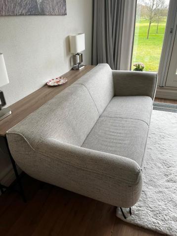 Lichtgrijs bankstel hoogte: 80 cm breedte: 218 cm diepte: 90 cm diepte zitvlak: 58 cm de bank is 5 jaar oud en mag weg omdat we een grotere bank hebben gekocht. Op een klein gebruiksspoor op het zitvl
