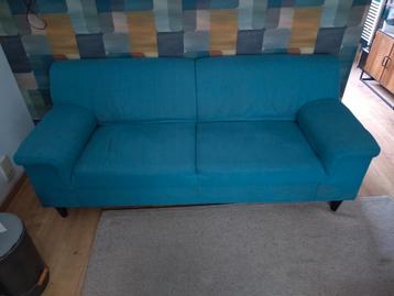Twee tweepersoonsbanken met een stoffen bekleding. De bank is gebruikt en heeft wat slijtageplekken op de zitting. Ophalen