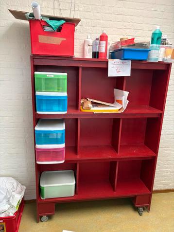 Rood verrijdbaar opbergrek met vakken