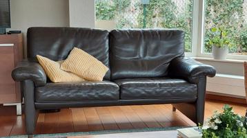 Mooie donkerbruine leren tweezitsbank in goede conditie. Ideaal voor een knusse zithoek. Gratis af te halen.
