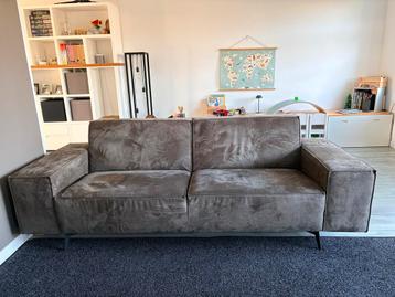 Nog mooie 2,5-zits bank van het merk montel. De bank heeft een bruin/grijze kleur en staat op elegante zwarte pootjes. Ideaal voor een moderne woonkamer. Wel wat gebruikerssporen bij de stiksels. Beha