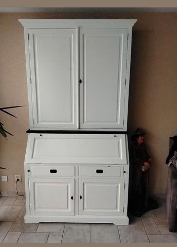 Deze prachtige landelijke secretaire van de bommel meubelen is 6 jaar oud en verkeert in goede staat. Gemaakt van wit mindihout, biedt dit meubelstuk veel opbergruimte met 16 laden, 5 deuren en 6 open
