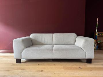3-zits bank van leen bakker in een neutrale beige kleur. De bank is gebruikt en heeft enkele vochtvlekken, zoals te zien op de foto's. Waarschijnlijk goed weg te halen met een stoomreiniger. Zit n